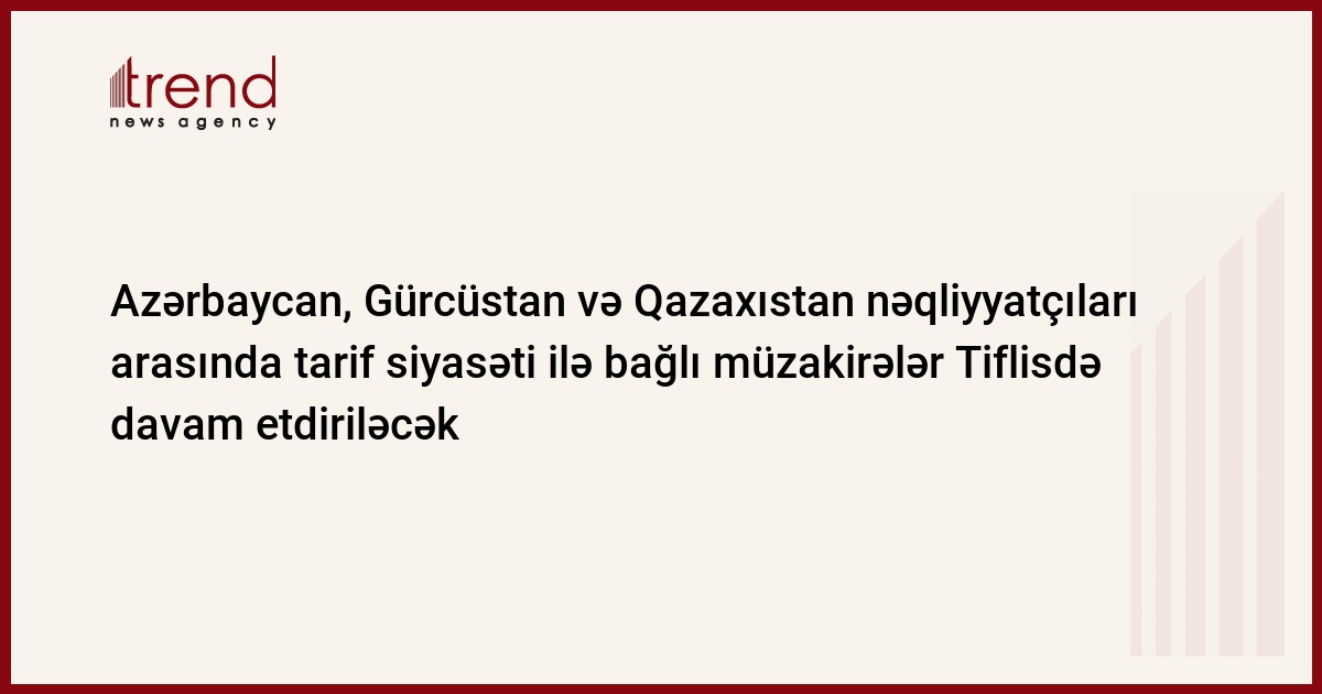 Azərbaycan, Bakı/ Trend müxbir İ.Xəlilova/ Mayın sonuna qədər Azərbaycan, Gürcüstan və Qazaxıstan nəqliyyat nazirlikləri bütün növ yüklərə görə tarif siyasətinin razılaşdırılması üzrə Tiflisdə növbəti görüş keçirəcəklər. Bu barədə çərşənbə günü Azərbaycan nəqliyyat nazirinin müavini Musa Pənahov məlumat verib.