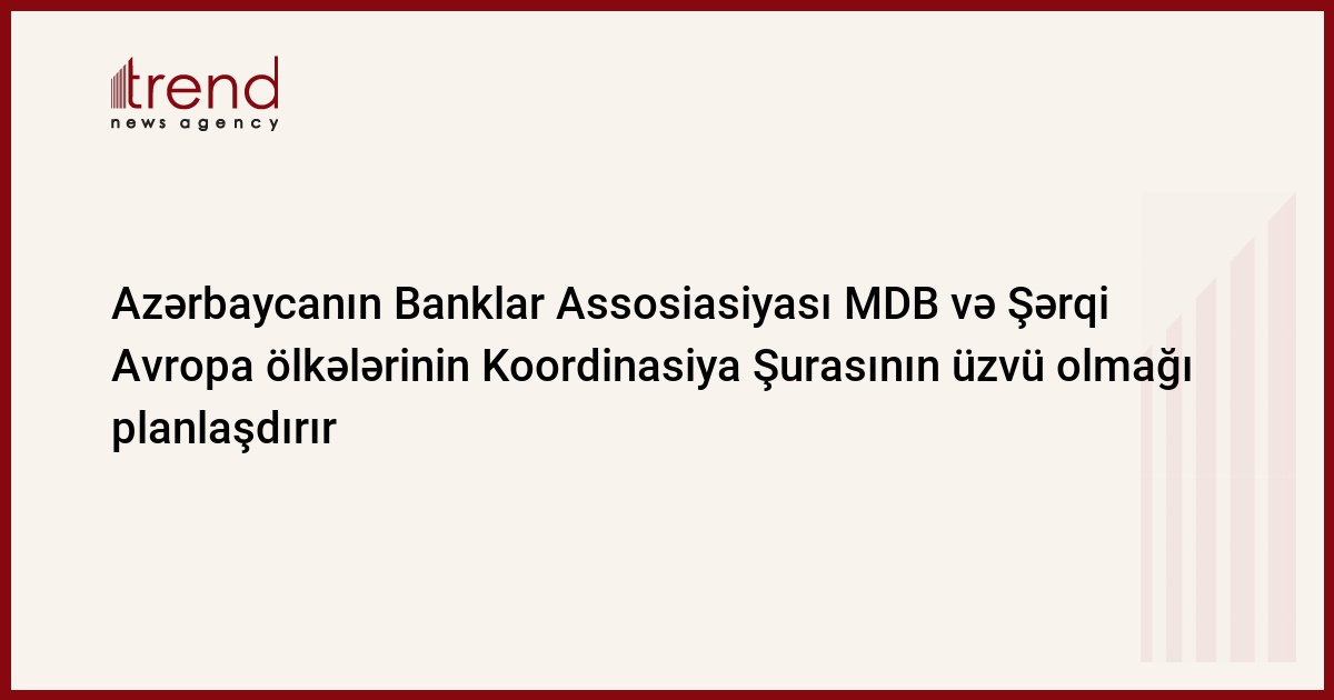 Azərbaycan, Bakı/müxbir Trend İ.Xəlilova / Azərbaycanın Banklar Assosiasiyası (ABA) MDB və Şərqi Avropa ölkələrinin Koordinasiya Şurasının üzvü olmağı planlaşdırır. Bu barədə cümə axşamı Assosiasiyanın icraçı direktoru Fərhad Əliyev məlumat verib. Onun sözlərinə görə, bu təşəbbüslə ABA prezidenti Eldar İsmayılov iyunun üçüncü ongünlüyünə planlaşdırılan Assosiasiyanın ümumi yığıncağında çıxış edəcək.