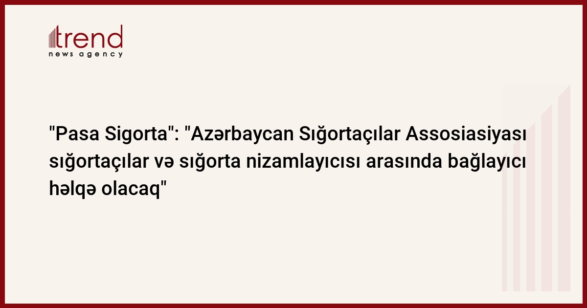 Azərbaycan,Bakı/müxbir Trend Ü.İsmayılova/ Azərbaycan Sığortaçılar Assosiasiyasının işi sığortaçılar və sığorta nizamlayıcısı arasında əlaqə nöqtəsi olacaq. Bu barədə cümə günü "Pasa Sigorta" şirkətinin baş direktor müavini Nofəl Rzayev bildirib.
