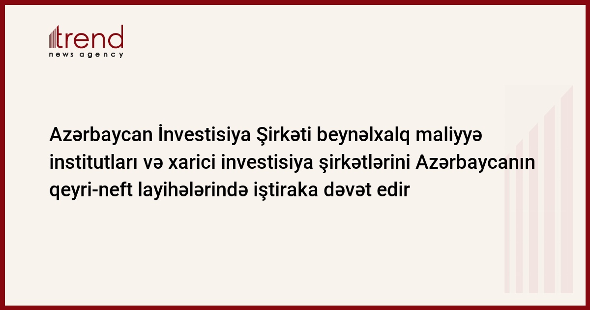 Azərbaycan, Bakı/müxbir Trend İ.Xəlilova/"Azərbaycan İnvestisiya Şirkəti" SC beynəlxalq maliyyə institutları və xarici investisiya şirkətləri ilə Azərbaycanın qeyri-neft layihələrində birgə iştirak etmək perspektivlərini müzakirə edib. Bu barədə cümə günü AİŞ-dən məlumat verilib.
