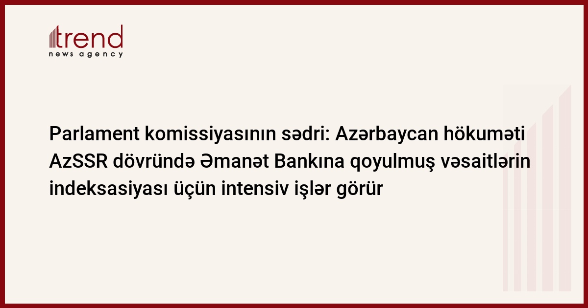 Azərbaycan, Bakı/ Trend müxbir S.İlhamqızı/ Azərbaycan vətəndaşlarının AzSSR Əmanət Bankına qoyduqları vəsaitlərin indeksasiyası məsələsi hökumətin diqqət mərkəzindədir və bu istiqamətdə intensiv işlər aparılır. Bunu cümə axşamı jurnalistlərə Milli Məclisin İqtisadi siyasət daimi komissiyasının sədri Ziyad Səmədzadə bildirib.