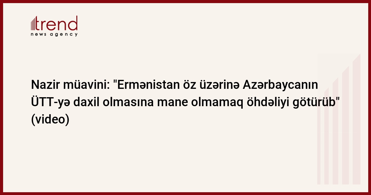 "Mən bu məlumatı KİV-dən əldə etmişəm. Qeyd etmək istərdim ki, 2003-cü ildə Ermənistanın ÜTT-yə qəbulu məsələsi qaldırılanda Azərbaycan tərəfinin tələbi ilə Ermənistan təşkilatın katibliyinə Azərbaycanın ÜTT-yə daxil olma prosesinə mane olmamaq barədə öhdəçilik götürdüyünü bəyan edən məktub göndərib" - deyə nazir müavini qeyd edib.