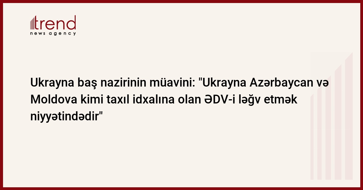 Ukrayna, Kiyev /müx. Trend Z.Novosvitskiy/ Ukraynanın aqrar-sənaye kompleksi məsələləri üzrə baş nazirinin müavini Viktor Slauta Ukraynanın "Delo" qəzetinə verdiyi müsahibəsində bildirib ki, Ukrayna taxılın qiymətinin ucuzlaşdırılması məqsədilə Azərbaycan və Moldova kimi taxıl idxalına olan ƏDV-i ləğv etmək niyyətindədir.