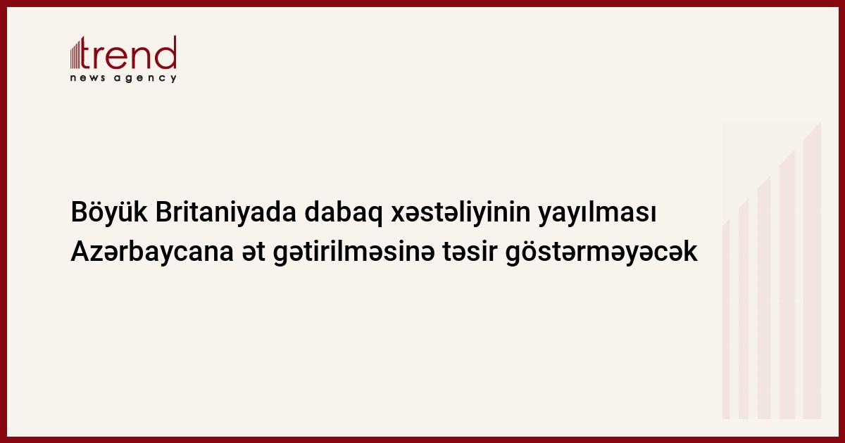 Azərbaycan, Bakı /müx. Trend S.Babayeva/ Böyük Britaniyada dabaq xəstəliyinin yayılması Azərbaycan üçün təhlükə törətmir. Bunu çərşənbə axşamı Azərbaycanın Kənd Təsərrüfatı Nazirliyi yanında Dövlət Baytarlıq Xidmətinin katibi Yolçu Xanvəli deyib.