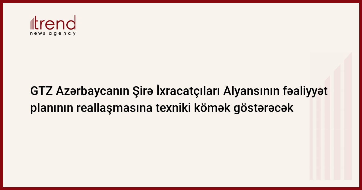 Azərbaycan, Bakı / Trend müxbir İ.Xəlilova / Cümə axşamı Azərbaycanda İxracın və İnvestisiyaların Təşviqi Fondunun prezidenti Emil Məcidovun verdiyi məlumata görə, Azərbaycanın meyvə şirələri ixracatçıları alyansının fəaliyyətinə ilk texniki yardım Almaniyanın Texniki Yardım Cəmiyyəti (GTZ) tərəfindən göstəriləcək.