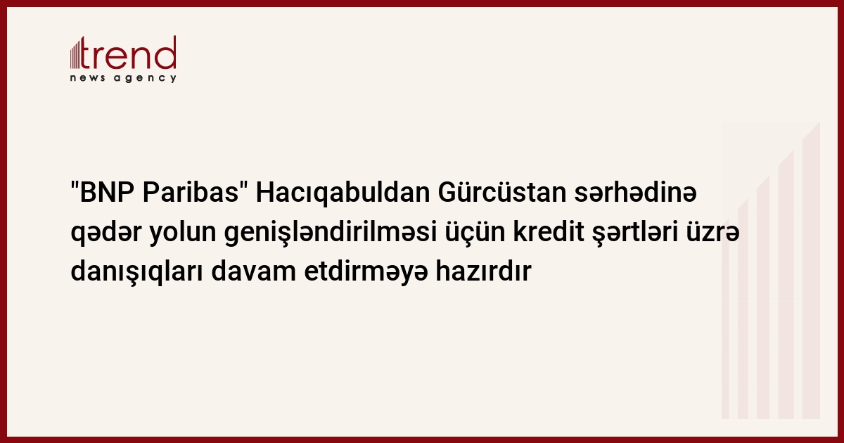 Azərbaycan, Bakı/ Trend müxbir İ.Xəlilova/ Fransanın "BNP Paribas" bankı Hacıqabuldan Gürcüstan sərhədinədək avtomagistralın iki zolaqlı yoldan 4 zolaqlı yola genişləndirilməsi layihəsi üçün kredit şərtlərinin yumşaldılması üzrə Azərbaycan hökuməti ilə danışıqlarda fasiləni saxlamaqda davam edir. Şənbə günü Nəqliyyat Nazirliyindən verilən məlumata görə, onlar danışıqları yalnız sentyabrın sonu-oktyabrın əvvəlində davam etdirmək niyyətindədirlər.