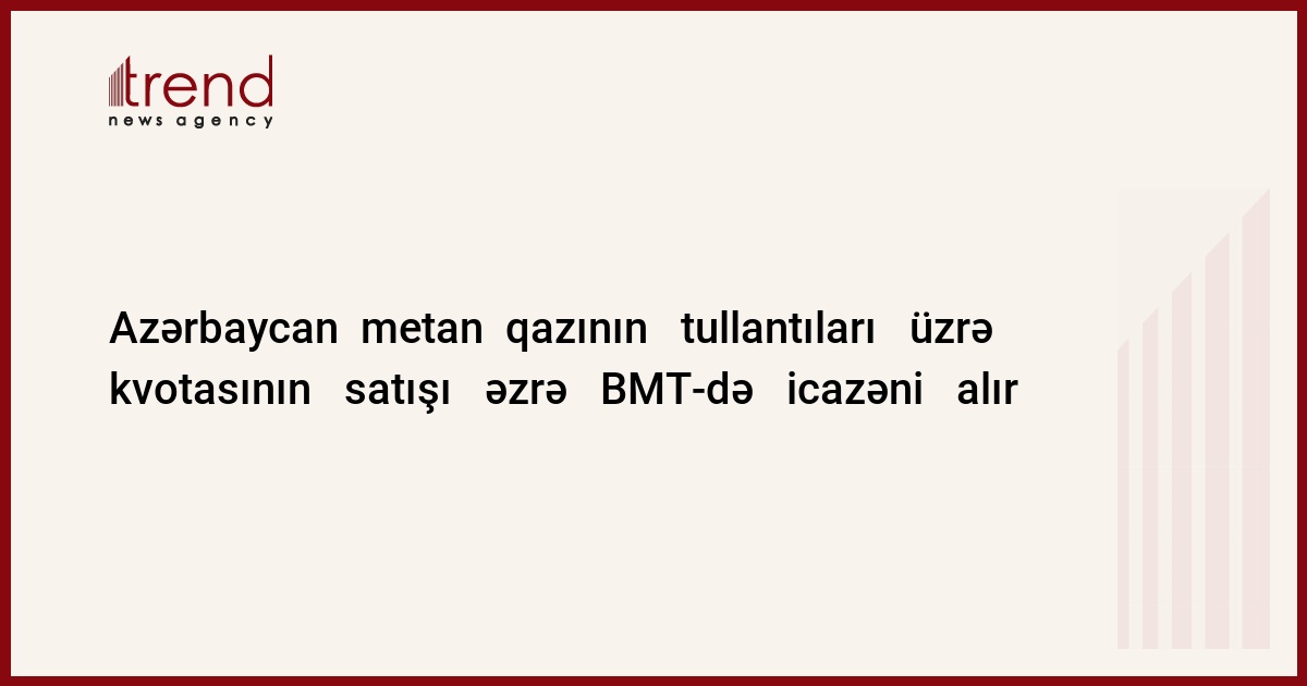 Azərbaycan , Bakı / Trend müxbir İ.Xəlilova / Azərbaycan ekologiya və təbii ehtiyyatlar nazirliyi BMT-də metan qazının tullantısının satışına olan kvotalarının icazə alınmıası prosesinə başlayıb . Bu haqda iqtisda inkişaf nazirliyi investisiya siyasəti şöbəsinin rəisi Əskər Ələkbərov cümə günü məlumat verib . Balakəndə məişət tullantıları poliqonundan qazın alınması layihəsi yaponiyanın Mitsubishi korporasiyası ilə 2007-ci il apreldə imzalanan memorandum əsasında hazırlanıb . Şirkət iqtisadi inkişaf nazirliyinə layihənin texniki iqtisadi əsaslandırmasını təqdim edib .
