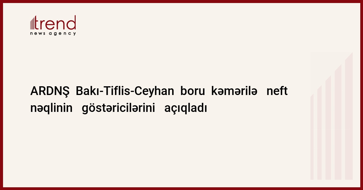 Azərbaycan, Bakı / Trend / 9 ay ərzində Bakı-Tiflis-Ceyhan boru kəmərilə 22 mln. 707 min ton yüngül azərbaycan nefti nəql olunub. Dövlət neft şirkətinin məlumatında deyilir ki, oktyabrda bu göstərici 2 mln. 713 min ton təşkil edib. Kəmərin istismara verildiyi andan indiyə qədər onun vasitəsilə 32 mln. 100 min ton neft nəql olunub .
