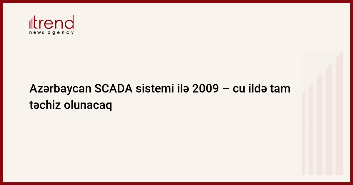 Azərbaycan, Bakı / Trend , müxbir S.Əliyev/ Enerji şəbəkəsində hadisələrə operativ reaksiya verməyə imkan verəcək, həmçinin, enerjinin effektli təminatını artıraraq, itkiləri azaldacaq SCADA sisteminin yaradılması 2009 - cu ildə başa çatacaq. Bu barədə cümə günü "Azərenerji" Səhmdar Cəmiyyətinin vitse - prezidenti Marlen Əsgərov məlumat verib. Layihə Azərbaycanın bütün rayonlarının SCADA sistemi ilə təchizatını nəzərdə tutur. "Azərenerji" SCADA layihəsinin ikinci mərhələsinin reallaşdırılması üzrə tenderin qalibi olmuş Fransa şirkəti "AREVA" ilə saziş bağlamaq niyyətindədir. Fransız şirkəti Azərbaycandakı 60 yüksəkvoltlu yarımstansiyaların SCADA - nın tələblərinə uyğun səviyyəyə gətirilməsinə yardım göstərəcək. Şirkət stansiyalardakı transformator və başqa cihazların təmirini həyata keçirəcək. Şirkət bütün stansiyaları, SCADA layihəsinin birinci mərhələsi çərçivəsində, "Azərenerji" də yaradılmış üç dispetçer mərkəzinə qoşmalıdır. Bu məqsədlə 1000 km uzunluğunda kabel çəkiləcək. Layihənin ümumi dəyəri55 mln dollardır.Bunun 48 mln. Dollarını DB , 7 mln. dollarını Azərbaycan hökuməti verəcək. Bankın Direktorlar Şurası krediti 2005 - ci il mayın 17-də təsdiqləyib və bu, ölkəyə Beynəlxalq Yenidənqurma və İnkişaf Bankının şərtlərilə ayrılmış ilk kreditdir.