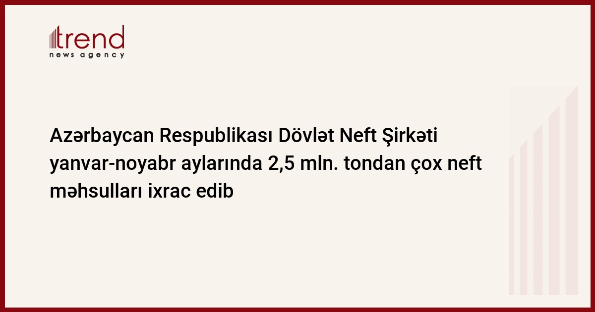 Azərbaycan, Bakı, / Trend / Azərbaycan Respublikası Dövlət Neft Şirkətinin Marketinq və İqtisadi Əməliyyatlar İdarəsi tərəfindən 2007-ci ilin yanvar-noyabr ayları ərzində 2,7 mln. ton neft məhsulları ixrac olunub. Noyabr ayında isə 225,16 min ton neft məhsulu ixrac olunub.