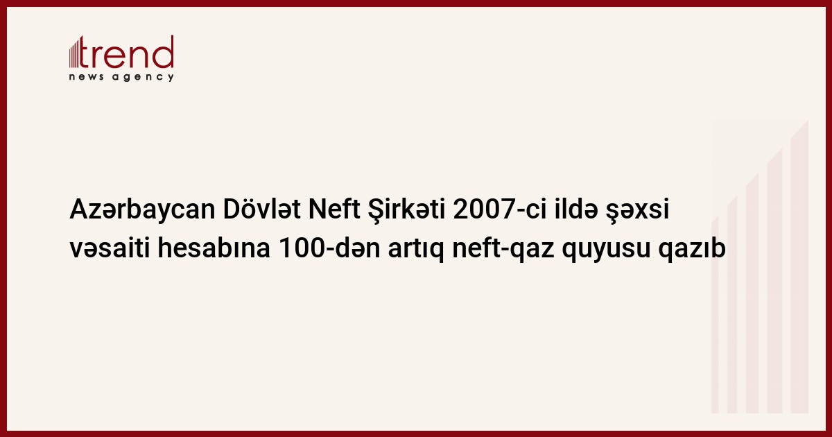 Azərbaycan, Bakı / Trend / Dövlət Neft Şirkətinin (ARDNŞ) verdiyi məlumata görə, ARDNŞ-ın kompleks qazma işləri tresti bu il müstəqil sürətdə neft və qaz yataqlarında 105 quyu istismara verib.