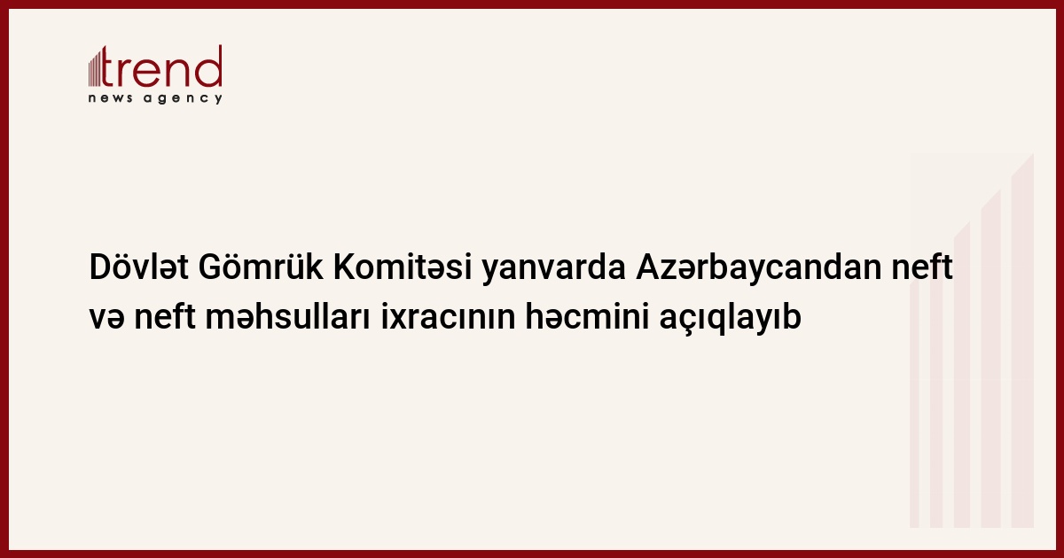 Gömrük Komitəsinin məlumatına əsasən, yanvar ayında QKSSS Azərbaycandan 13,535 min ton, Monolit-D - 4,1 min ton, Sumgait Asgarlar - 3,5 min ton neft məhsulları ixrac edib.