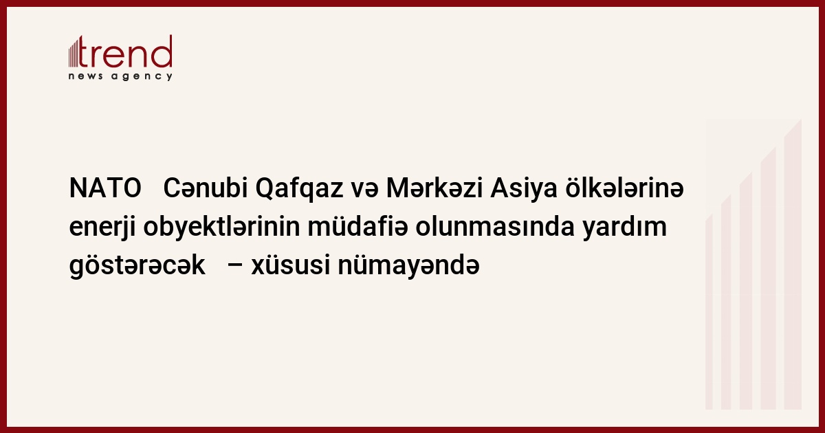 Azərbaycan, Bakı, 07 mart / Trend , müxbir K.Ramazanova/ NATO Cənubi Qafqaz və Mərkəzi Asiya ölkələrinə enerji obyektlərinin müdafiə olunmasında yardım göstərməyə hazırdır. Bu barədə cümə günü Bakıda jurnalistlərə NATO-nun Cənubi Qafqaz üzrə xüsusi nümayəndəsi Robert Simons bildirib.