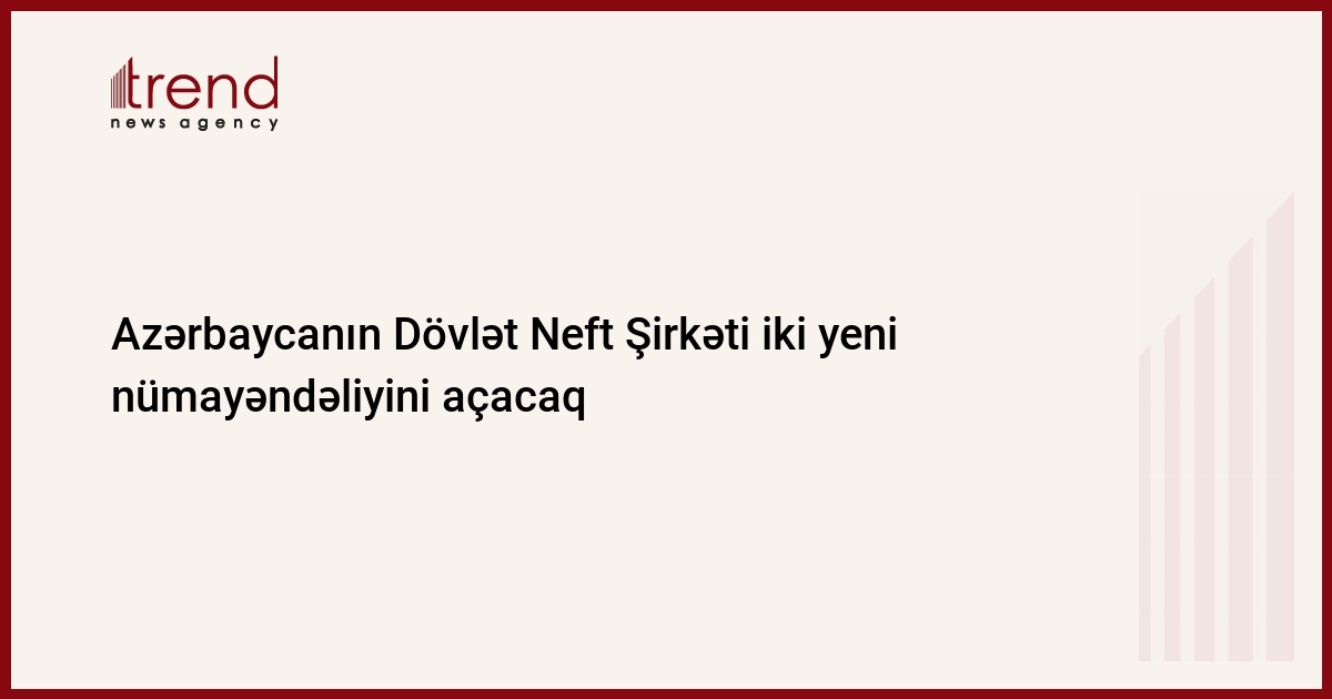 Azərbaycan, Bakı,14 mart / Trend / Yaxın günlərdə Dövlət Neft Şirkəti (ARDNŞ) xaricdə iki yeni nümayəndəliyini açmaq niyyətindədir. Onlardan biri Qazaxıstanda, digəri "Avropa ölkələrinin birində" açılacaq. Bu barədə cümə günü ARDNŞ -nin yüksək rütbəli nümayəndəsi bildirib.