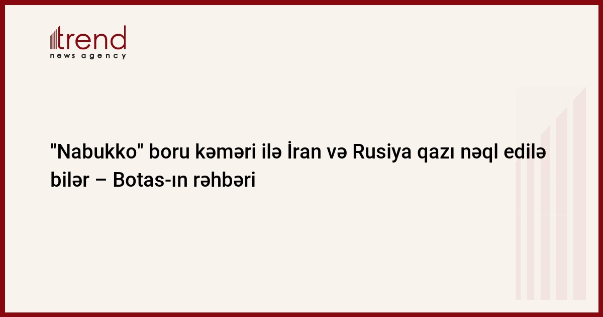 Azərbaycan, Bakı, 19 mart/ Trend / Xəzər regionundan Avropaya təbii qaz nəqlinin planlaşdırıldığı "Nabukko" qaz kəmərinin doldurulması üçün İran və Rusiyadan qaz alına bilər. Bloomberg-in məlumatına görə, bu barədə "Nabukko" üzrə altı tərəfdaşdan biri olan Türkiyənin Botas şirkətinin rəhbəri Saltuk Düzyol məlumat verib.