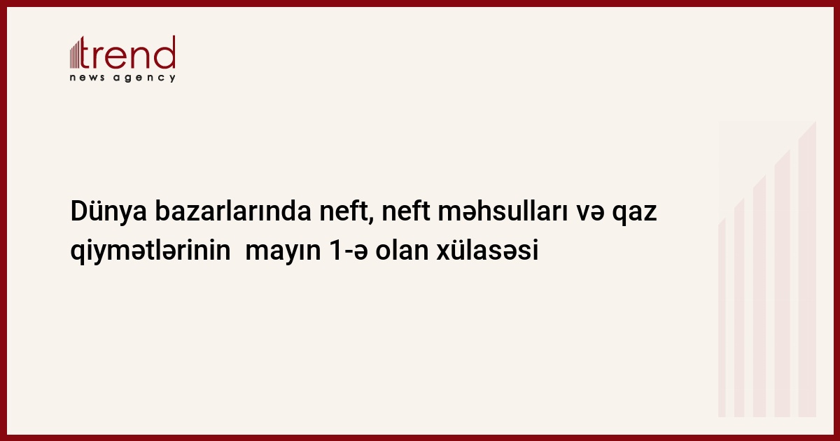 Azərbaycan, Bakı 02 may/ " Mayın 1 -nə dünya bazarlarında neft, neft məhsulları və qaza olan qiymətlərin xülasəsi "Energy Intelligence Group" tərəfindən təqdim olunub.