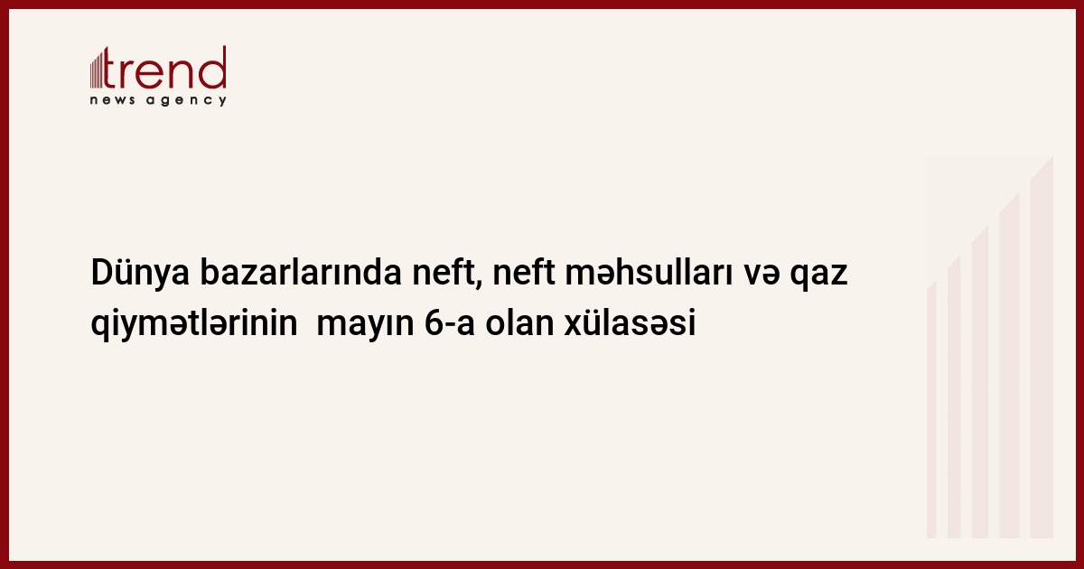 Azərbaycan, Bakı / " Mayın 6-na dünya bazarlarında neft, neft məhsulları və qaza olan qiymətlərin xülasəsi "Energy Intelligence Group" tərəfindən təqdim olunub.