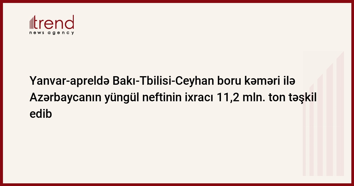 Azərbaycan, Bakı, 12 may/ Trend / "Azəri-Çıraq-Günəşli" dəniz blokunu mənimsəyən Azərbaycan Beynəlxalq Əməliyyat Şirkəti (ABƏŞ) yanvar-apreldə 11,5 mln. ton Azeri Light növlü neft ixrac edib. 2007-ci ilin yanvar-aprelində bu rəqəm 9,4 mln. ton olub.