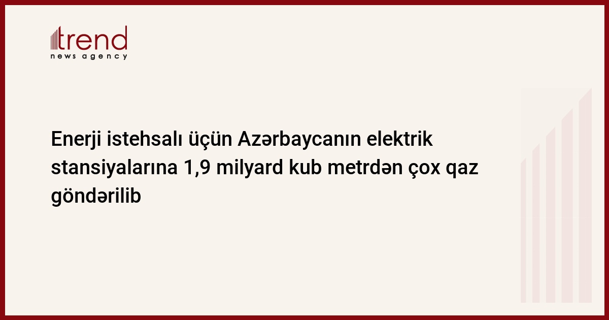 Azərbaycan, Bakı, 07 iyun/ Trend / Yanvar-may aylarında "Azərenerji" Səhmdar Cəmiyyətinə yanacaq qismində 1,9 mlrd. kub metr qaz verilib. Bu barədə ARNDŞ-ın məlumatında bildirilir.