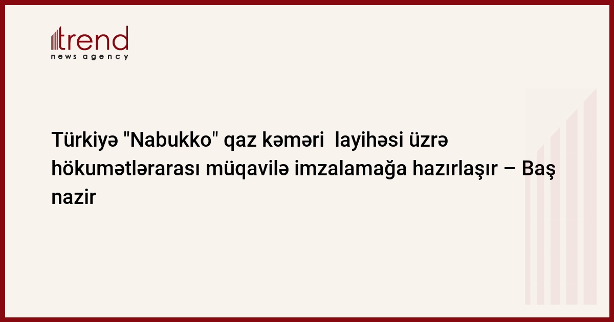 Azərbaycan, Bakı, 02 iyul / Trend / "İTAR-TASS"ın verdiyi xəbərə görə, Türkiyə yaxın aylarda "Nabukko" qaz kəmərinin tikinti layihəsi üzrə hökumətlərarası müqavilə imzalayacaq.