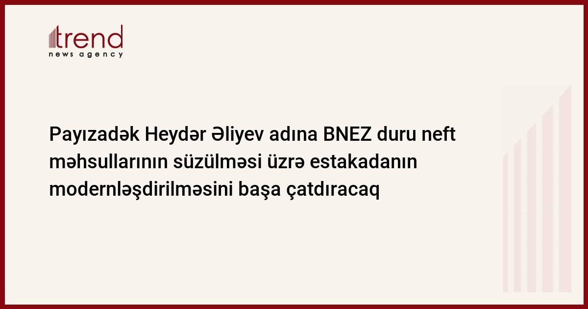 Azərbaycan, Bakı, 04 avqust/ Trend , müxbir E.İsmayılov/ Azərbaycan Dövlət Neft Şirkətinin balansında olan Heydər Əliyev adına Bakı Neft Emalı Zavodu (BNEZ) avqustun sonuna sentyabrın əvvəlinədək aviasiya kerosini və dizel yanacağının süzülməsi üzrə Güzdəkdə yerləşən yeni estakadanı istismara verəcək, - BNEZ-dən bildiriblər.