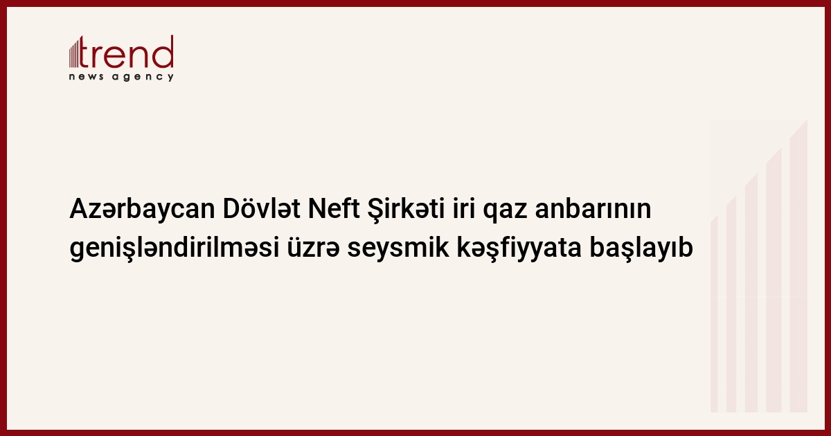 Azərbaycan, Bakı, 15 avqust/ Trend , müxbir E.İsmayılov/ Azərbaycan Dövlət Neft Şirkətinin Geofizika və Geologiya İdarəsi Qaradağ qaz anbarının genişləndirilməsi layihəsi çərçivəsində geoloji strukturun dəqiqləşdirilməsi üçün üçölçülü seysmik kəşfiyyatın aparılmasına başlayıb, cümə günü idarədən bildiriblər. İşlər cari ilin sonunadək başa çatacaq.