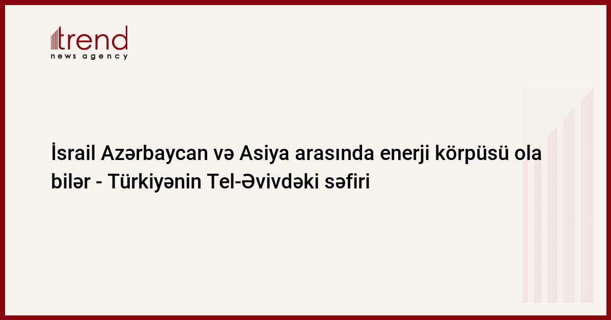 İsrail, Qüds, 18 sentyabr / Trend , müxbir A.Qut/ İsrail Azərbaycan neftinin Uzaq Şərqə nəqli üçün körpü ola bilər və o, Azərbaycan neftinin Asiya bazarlarına çatdırılması üçün nəqliyyat xidmətlərini təklif etməyə hazırdır, - Türkiyənin Tel-Əvivdəki səfiri Namiq Tan hesab edir.