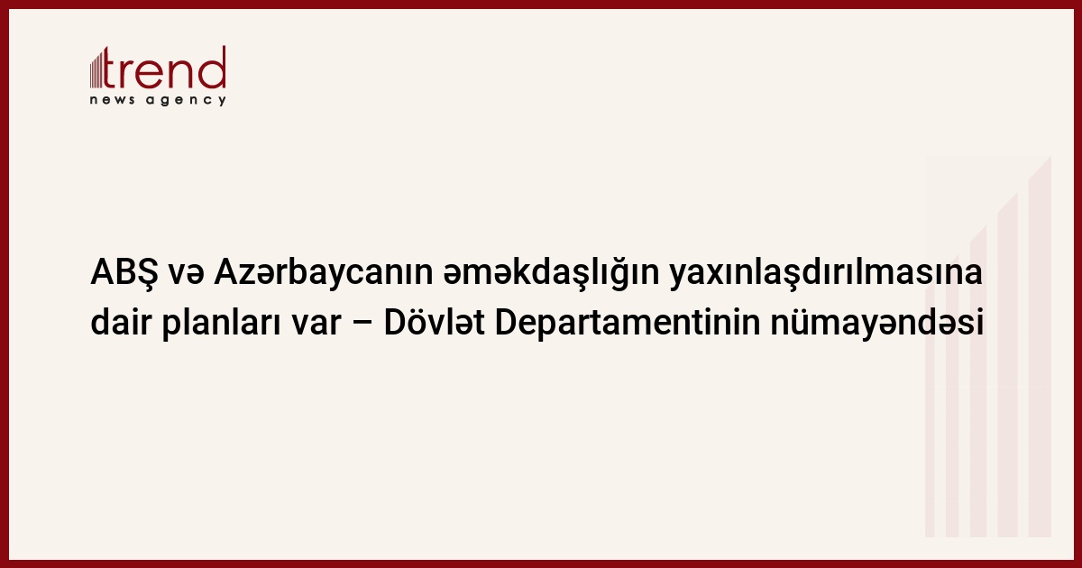 Azərbaycan, Bakı, 18 sentyabr/ Trend , müxbir R.Novruzov/ ABŞ Dövlət Departamentinin nümayəndəsi Metyu Brayza Bakıda bəyan edib ki, Birləşmiş Ştatlar və Azərbaycan arasında əməkdaşlığın daha da yaxınlaşdırılmasına dair planlar var.