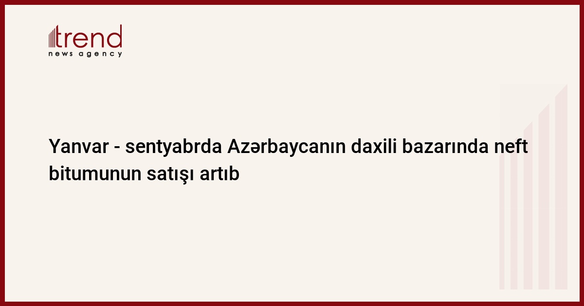 Yanvar-sentyabrda daxili bazarda 131,1 min ton neft bitumu satılıb. Bu, 2007-ci ildən 18,5 faiz çoxdur. Azərbaycanın daxili bazarında BN 60/90 markalı bitumun 1 tonunun (təchizata çəkilən xərclər və ƏDV nəzərə alınmaqla) qiyməti 160 manatdır.