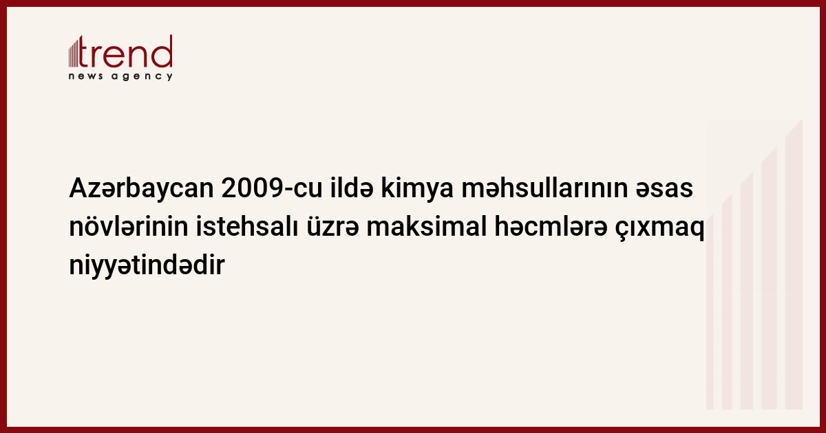 Azərbaycan, Bakı, 03 noyabr/ Trend / Gələn il Azərbaycanda əsas kimya məhsullarının təxminən bütün növlərinin istehsalının maksimal həcmlərinə çıxmaq proqnozlaşdırılır.