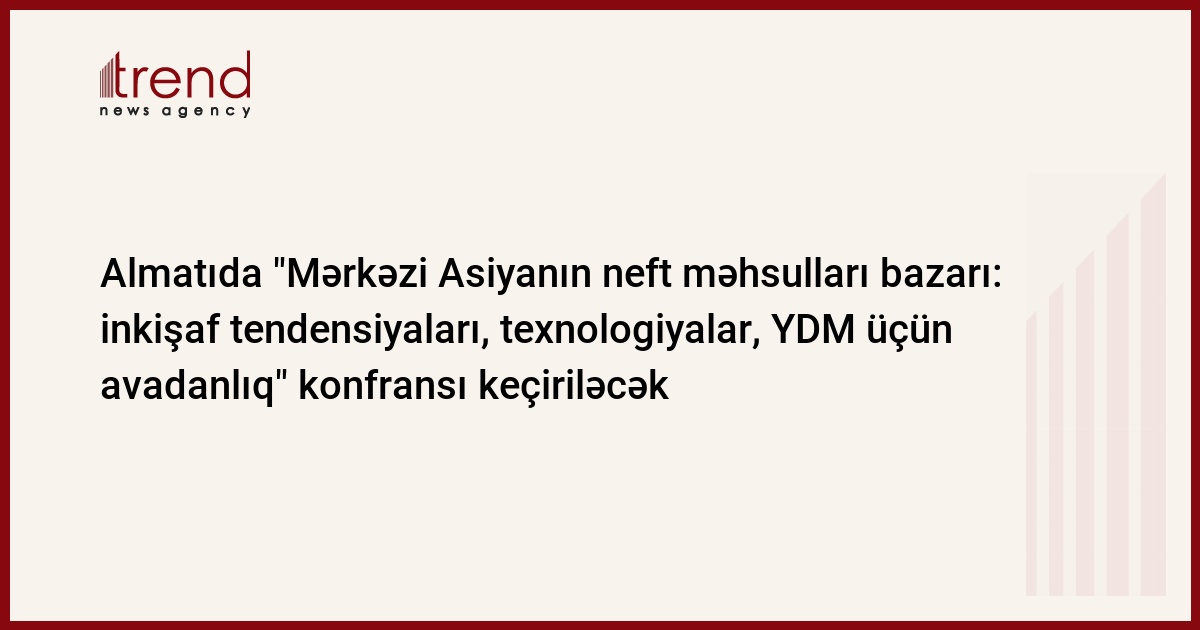 Qazaxıstan, Astana, 04 noyabr/ Trend , müxbir K.Konırova/ Noyabrın 13-14 - də Almatıda "Mərkəzi Asiyanın neft məhsulları bazarı: inkişaf tendensiyaları, texnologiyalar, YDM üçün avadanlıq" II Beynəlxalq Konfransı keçiriləcək, -- ""KazMunayqaz" Ticarət Evi" SC-nin mətbuat xidməti xəbər verir.
