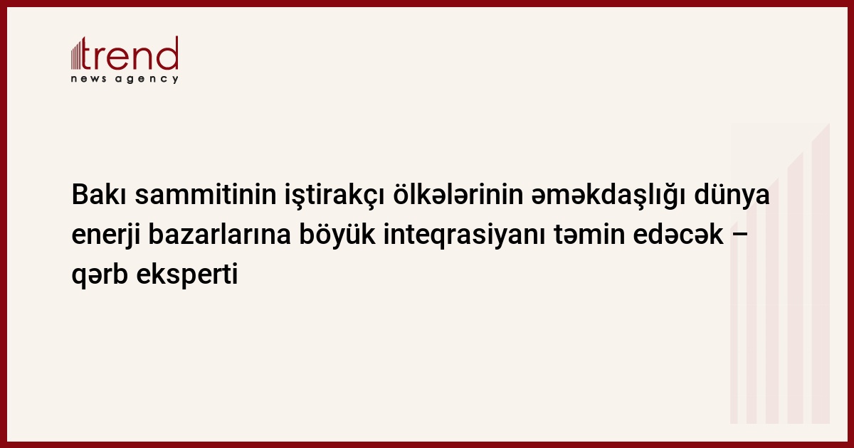 Azərbaycan, Bakı, 15 noyabr/ Trend , müxbir A.Bədəlova/ İtaliyanın Bruno Leoni İnstitutunun Enerji Departamentinin direktoru Karlo Staqnaro (Carlo Stagnaro) hesab edir ki, Bakıda keçirilən Enerji Sammitinin iştirakçı ölkələrinin əməkdaşlığı enerji bazarlarına böyük inteqrasiyaya nail olmağa kömək edəcək.