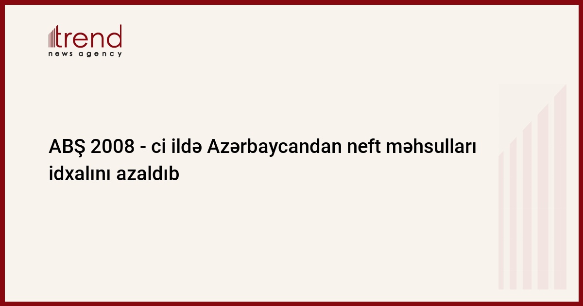 Azərbaycan, Bakı, 03 dekabr / Trend / 2008 - ci ilin yanvar - sentyabrında ABŞ Azərbaycandan 308 min barel neft məhsulları idxal edib. 2007-ci ilin yanvar - sentyabrında Azərbaycandan ABŞ - a neft məhsulları idxalı 1,44 mln. barel təşkil edib. Bu barədə ABŞ Dövlət Enerji İnformasiyaları İdarəsinin (EIA) məlumatında bildirilir.