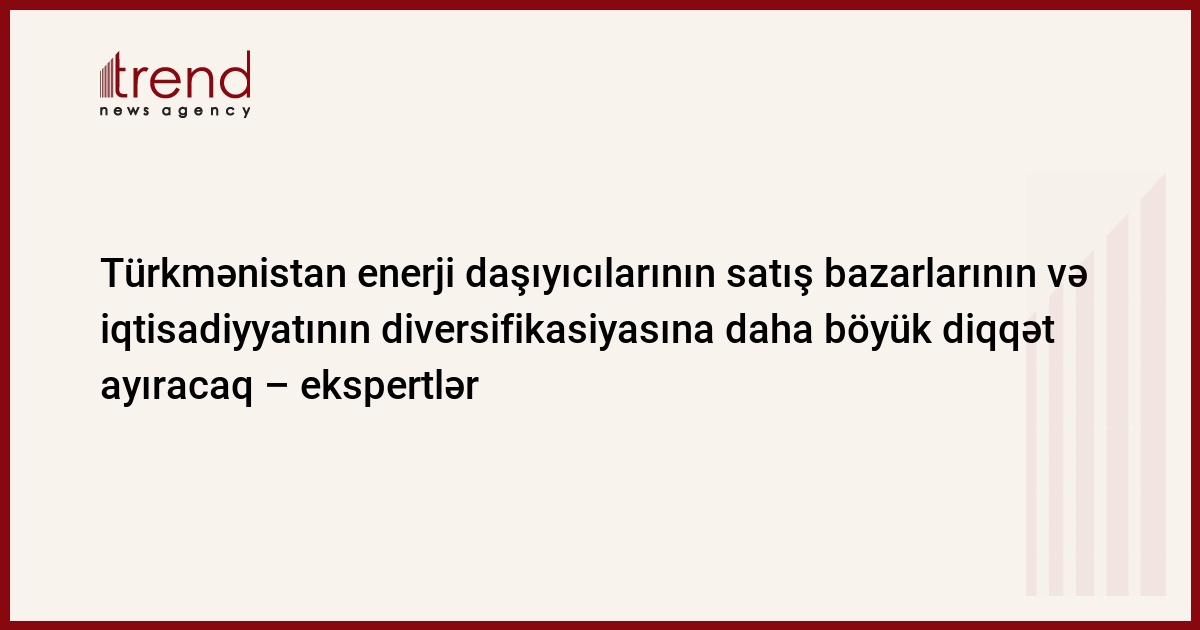 Azərbaycan, Bakı, 07 yanvar/ Trend , müxbir E.Həsənov/ Rusiya və Ukrayna arasında qaz böhranının kəskinləşməsi, qlobal iqtisadi tənəzzül fonunda, Türkmənistan enerji daşıyıcılarının satış bazarına daha çox diqqət yetirəcək və öz iqtisadiyyatının çoxvektorluluğunu möhkəmləndirəcək, - yerli ekspertlər hesab edirlər.