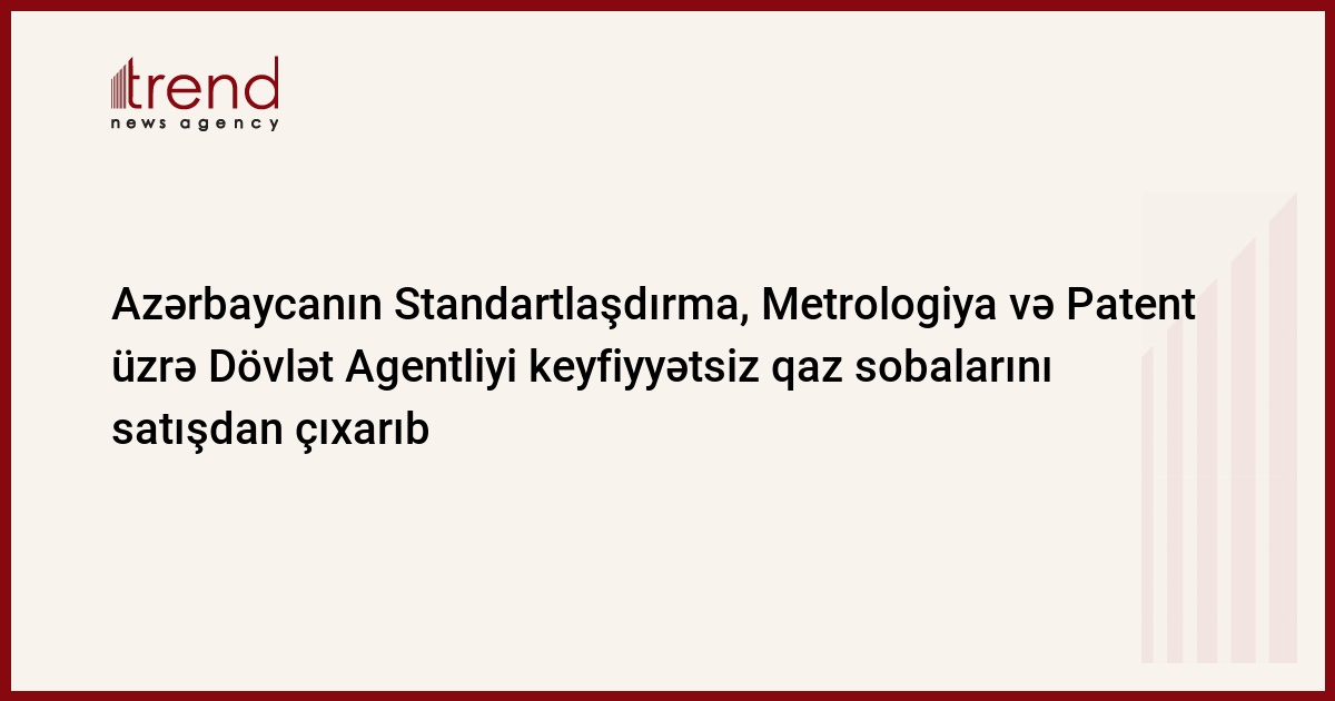 Azərbaycan, Bakı, 10 yanvar/ Trend , müxbir Ü.İsmayılova/ Azərbaycanın Standartlaşdırma, Metrologiya və Patent üzrə Dövlət Agentliyi yanvarın 7-dən keyfiyyətsiz qaz sobalarından istifadə zamanı qaz sızması nəticəsində baş verən bir neçə bədbəxt hadisədən sonra istehlak bazarında xaricdən gətirilmiş qaz sobalarının (qızdırıcı) satışı üzərində nəzarəti gücləndirib. Bu barədə şənbə günü Komitənin Hüquq ekspertizası şöbəsinin rəhbəri İbrahim Babayev bildirib.