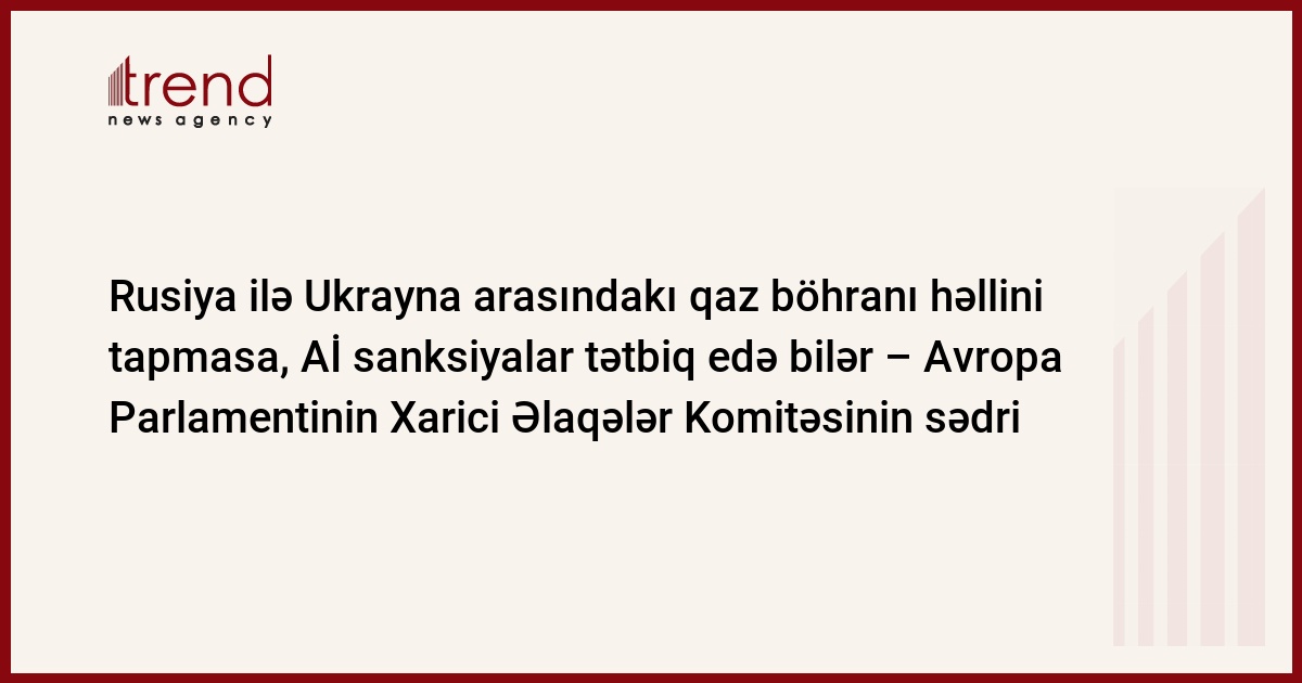 Fransa, Strasburq, 14 yanvar/ Trend , müxbir A.Məhərrəmli/ Rusiya ilə Ukrayna arasındakı qaz böhranı öz həllini tapmasa, Aİ sanksiyalar tətbiq edə bilər. Bu sözləri Avropa Parlamentinin Xarici Əlaqələr Komitəsinin sədri Yaçex Sariuş Volski çərşənbə axşamı qurumun sessiyası çərçivəsində qaz böhranına həsr olunmuş iclasında deyib.