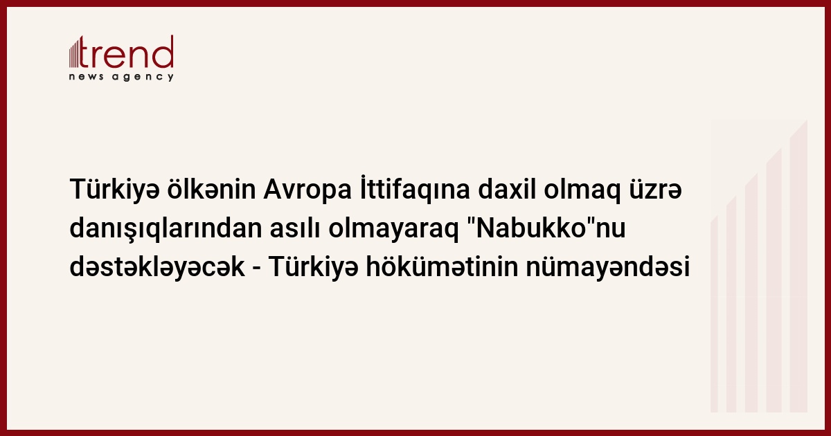 "Türkiyə daxilolma danışıqlarında uğur əldə edilməyəcəyi halda belə "Nabukko"nu dəstəkləyəcək", - "Kontakt" radiostansiyası layihədə iştirakın onun ölkəsi üçün də sərfəli olacağını qeyd edən türk məmurun sözlərini çatdırır.