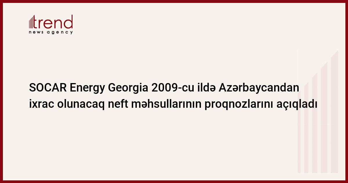 Azərbaycan, Bakı, 25 fevral / Trend , müxbir E.İsmaylov / SOCAR Energy Georgia şirkətinin başçısı Mahir Məmmədov çərşənbə günü bildirib ki, SOCAR şirkəti (Azərbaycan Dövlət Neft Şirkəti) 2009-cu ildə Gürcüstana 400 min tondan artıq neft məhsulları ixrac etməyi planlaşdırır.