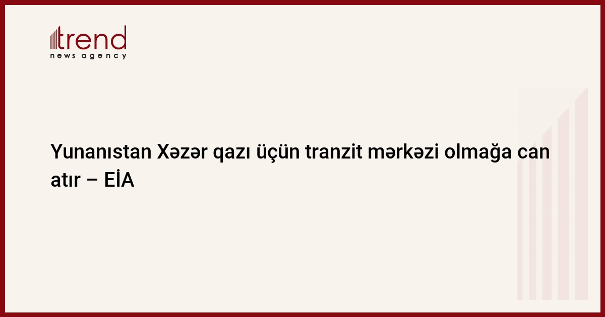 Azərbaycan, Bakı, 26 fevral / Trend , müxbir A.Bədəlova / ABŞ Enerji İnformasiyası İdarəsinin (EİA) məruzəsində deyilir ki, Yunanıstan Xəzər qazının nəqlində tranzit ölkə olmaq cəhdləri ilə Rusiya qazına olan asılılığını azaltmaq niyyətindədir.