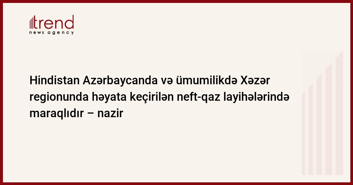 Hindistan Azərbaycanda həyata keçirilən neft-qaz layihələrində iştirakda maraqlıdır. Bu barədə Astanada Trend -ın xüsusi müxbirinə Hindistanın neft və təbii qaz naziri Murli Deora bildirib.