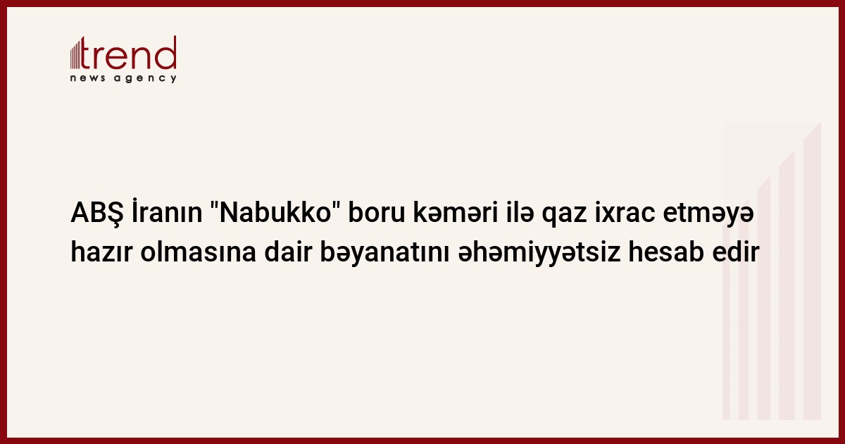 Tehranın "Nabukko" boru kəməri ilə öz təbii qazını tədarük etməyə hazır olmasına dair bəyanatı "boşdur", ABŞ-ın Dövlət katibi köməkçisinin müavini Metyu Brayza hesab edir. Onun fikrincə, İran kifayət qədər qaz ehtiyatına malik deyil.