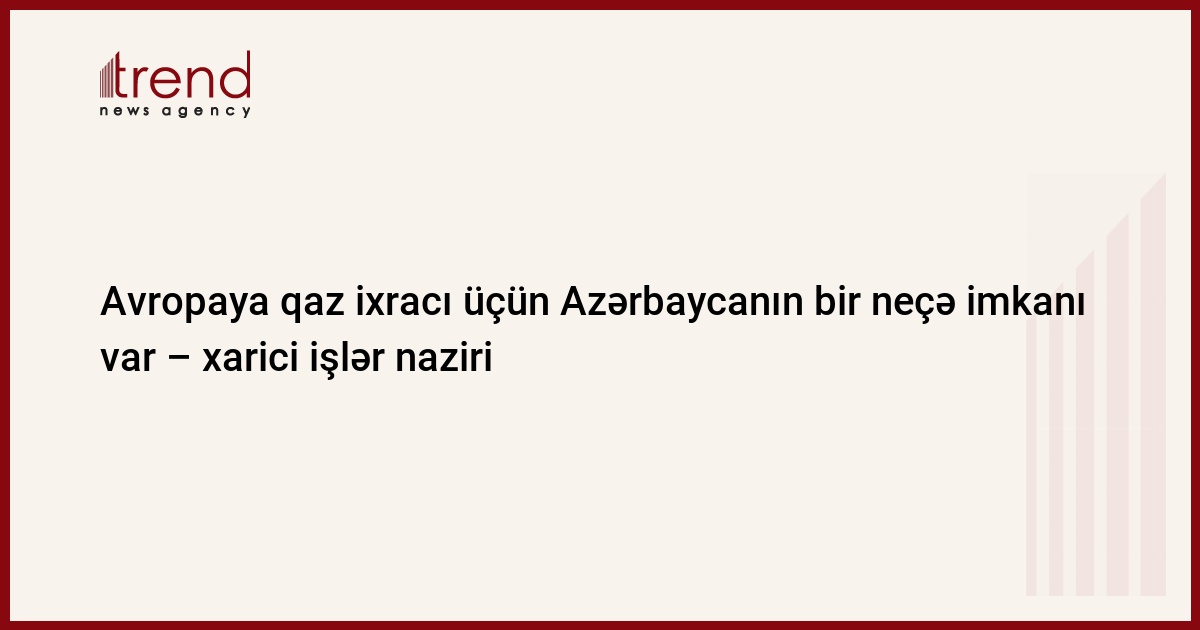 Azərbaycanın şəxsi qazını Avropaya ixrac etmək üçün bir neçə imkanı var. Bu barədə Trend -a Suriyada olan Azərbaycanın xarici işlər naziri Elmar Məmmədyarov bildirib.