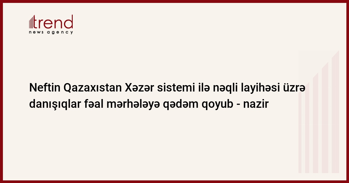 "Neftin Qazaxıstan Xəzər sistemi ilə nəqli (QXSN) layihəsi üzrə danışıqlar iyulun sonundan fəal mərhələyə qədəm qoyub", - Astanada Trend -ın xüsusi müxbirinə enerji və mineral resurslar naziri Sauat Mınbayev deyib.