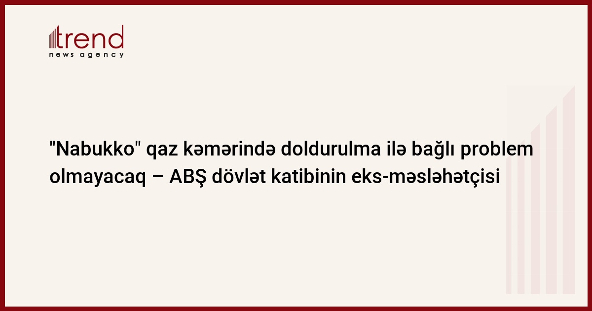 Xəzər regionu və Yaxın Şərqdən Avropa İttifaqı ölkələrinə qaz ixrac edəcək "Nabukko" qaz kəməri doldurulma problemi ilə üzləşməyəcək. ABŞ dövlət katibinin siyasi məsələlər üzrə keçmiş məsləhətçisi Mark Qrossman belə hesab edir.