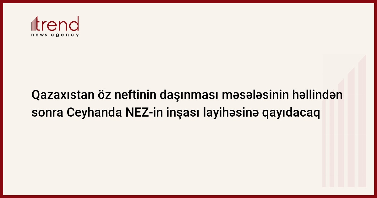 İki il əvvəl "KazMunayQaz" MŞ SC türk, hind və italyan şirkətləri ilə birlikdə türk limanı Ceyhanda NEZ-in inşasının mümkünlüyünü öyrənib.