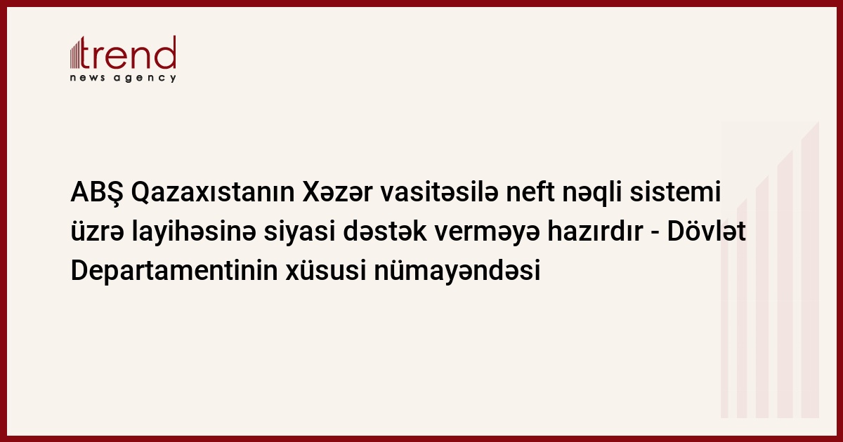 ABŞ Qazaxıstanın Xəzər vasitəsilə neft nəqli sistemi üzrə layihəsinə istənilən siyasi dəstəyi verməyə hazırdır. ABŞ Dövlət Depatamentinin Avrasiya enerji məsələləri üzrə xüsusi nümayəndəsi Riçard Morninqstar Trend -ın Astanadakı xüsusi müxbirinə belə deyib.