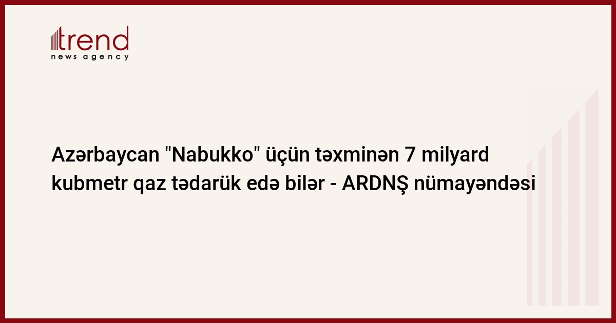 Azərbaycan "Nabukko" kəməri ilə öz işinə nə zaman başlasa təxminən 7 milyard kubmetr həcmində qaz tədarük edə bilər. Bu barədə Buxarestdə keçirilən Qara dəniz Enerji və İqtisadi Forumu zamanı ARDNŞ-nin vitse-prezidentinin müavini Vitali Bəylərbəyov bildirib. Məlumatı Avropa KİV yazır.