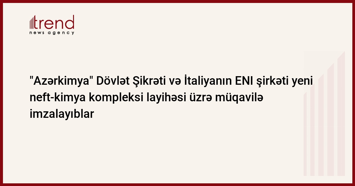 2009-cu il sentyabrın 29-da Fransanın Paris şəhərində "Azərkimya" Dövlət Şirkəti ilə İtaliyanın "ENI" (SNAMPROGETTI) şirkəti arasında Azərbaycanda yeni neft-kimya və gübrə istehsalı kompleksinin tikilməsi layihəsi üzrə "Qarşılıqlı Anlaşma Memorandumu" və "Məxfilik haqqında Saziş" imzalanıb.