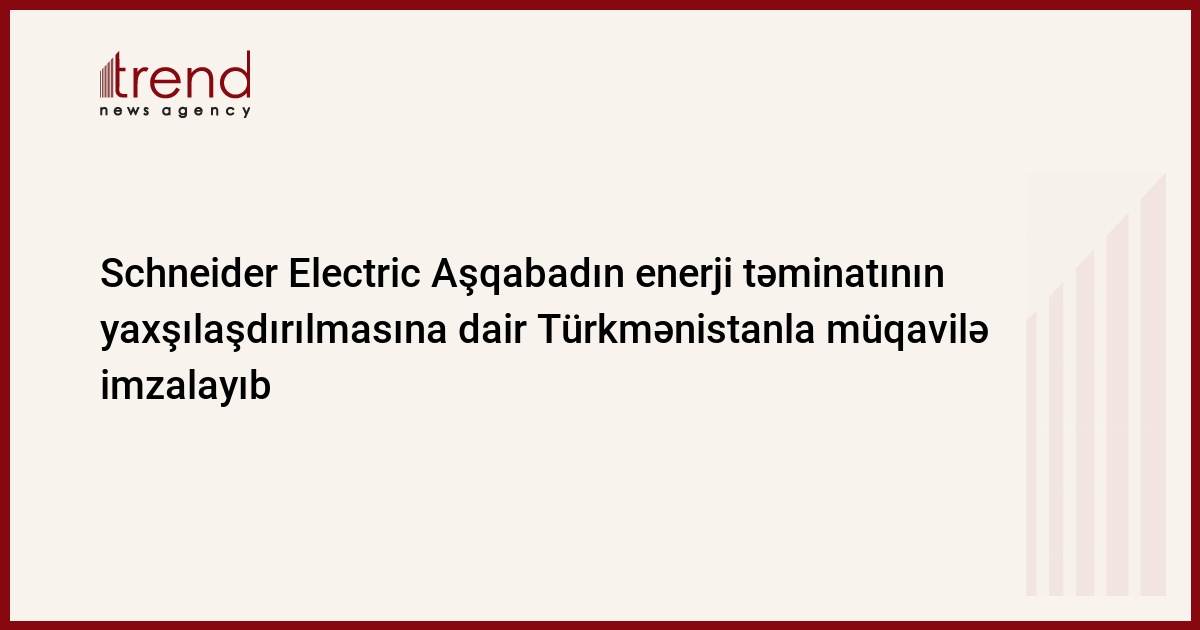 Fransanın Schneider Electric şirkəti Belçikanın Enex şirkəti ilə konsorsium çərçivəsində 600 min nəfər əhalisi olan Aşqabad şəhərinin enerji təminatının həyata keçirilməsinə dair Türkmənistan hökuməti ilə müqavilə imzalayıb. Bu barədə şirkətin press-relizində deyilir.