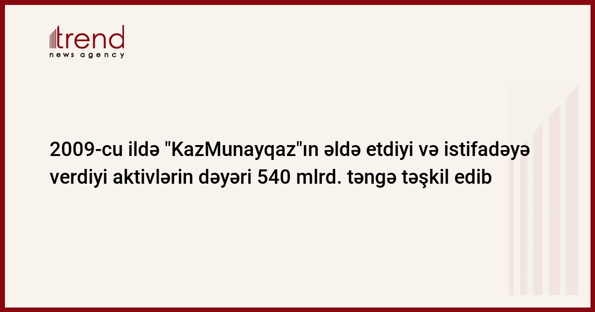 2009-cu ildə "KazMunayqaz"ın payı nəzərə alınmaqla əldə edilən və istifadəyə verilən aktivlərin dəyəri 540 mlrd. təngəyə ($1- 147 təngə) bərabər olub. Bu barədə Trend -a milli şirkətin prezidenti Kairgeldi Kabıldin məlumat verib.